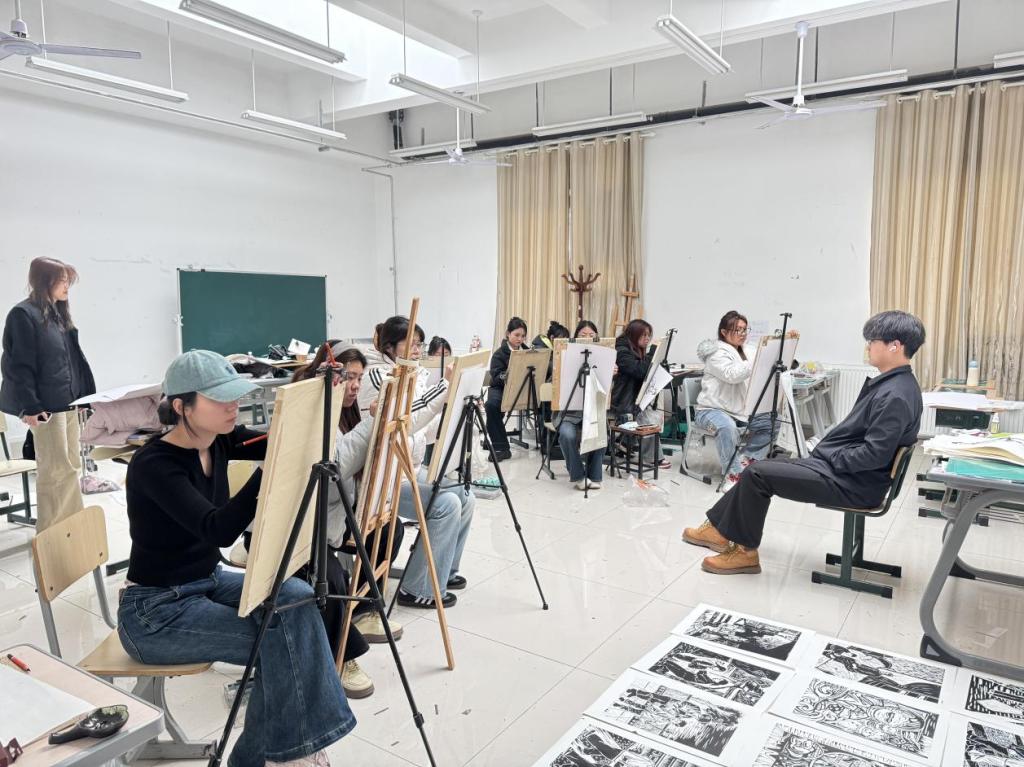 本次初赛严格对标省级赛事相关要求,专业技能测试环节设置人物速写写生、绘画命题创作、手工创作、书法创作四大考核项目,全面覆盖美术师范专业核心素养与专业能力。学院提前统筹安排比赛场地、创作材料及人员保障,参照历年省赛真题进行命题设计,保证初赛考核标准与省级大赛高度契合。模拟上课环节着重考查参赛学生的教学设计能力、课堂互动组织与语言表达水平。