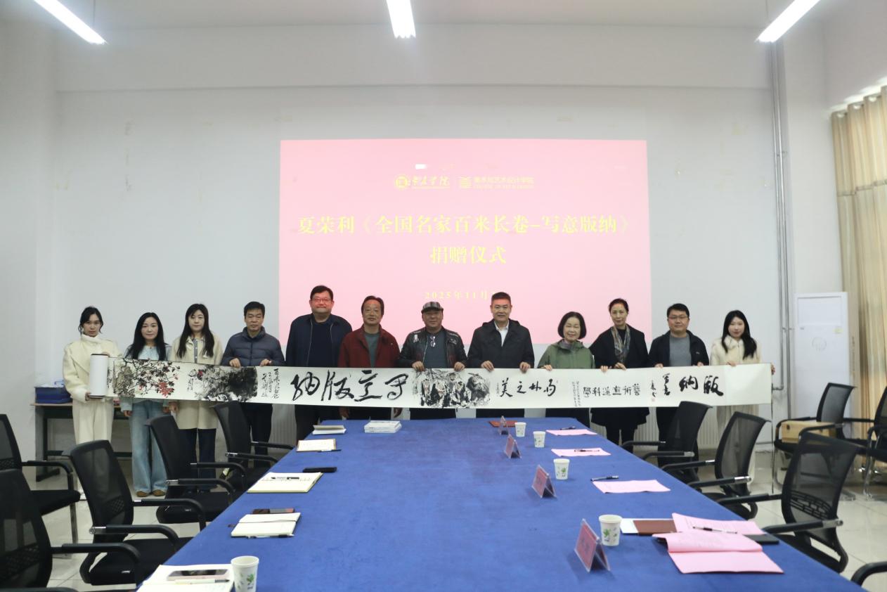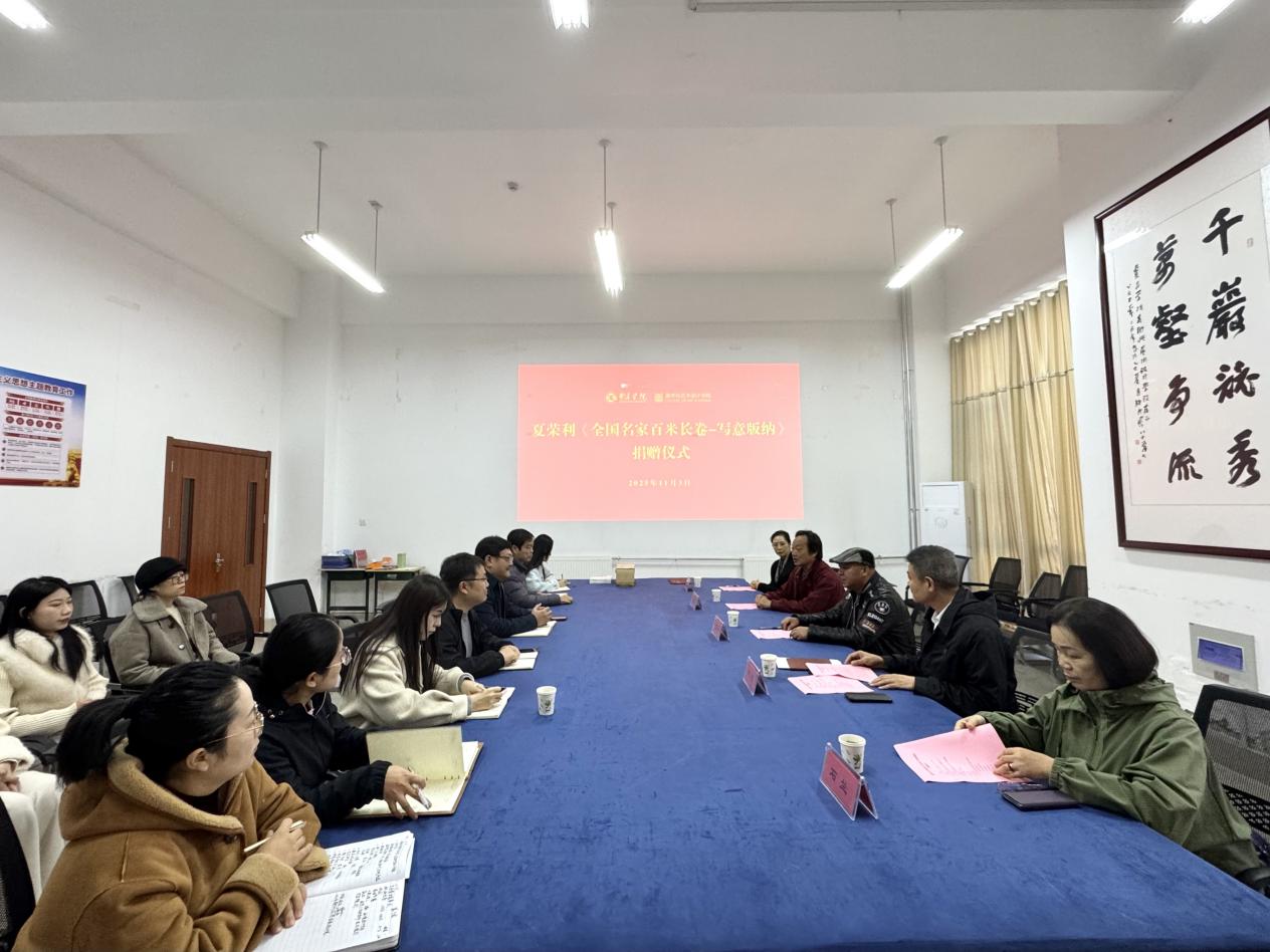 11月3日,365英国官网登录入口在博雅楼A213举行夏荣利《全国名家百米长卷—写意版纳》(复制件)捐赠仪式