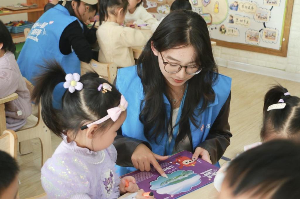 活动开始,志愿者以功勋人物故事为切入点,借助PPT演示阐述“两弹一星”精神内核,在幼儿园开展了手工互动环节,志愿者为小朋友分发黑色卡纸、主题简笔贴画、丙烯水彩笔等材料,小朋友以火箭、卫星、科研工作者等元素涂色进行创作。志愿者们耐心指导小朋友搭配色彩、勾勒线条,在手把手的教学中传递创作技巧,更在交流互动中深化对“两弹一星”精神的感性认知。在社区宣讲中讲述了在时代变迁中“两弹一星”精神的传承故事,老少互动、军民同心的场景,让红色精神在代际传递中焕发新的生机。宣讲结束后,志愿者们分组开展社区卫生清洁,志愿者们用实际行动践行“艰苦奋斗、无私奉献”的“两弹一星”精神,为社区居民营造了整洁、舒适的生活环境。
