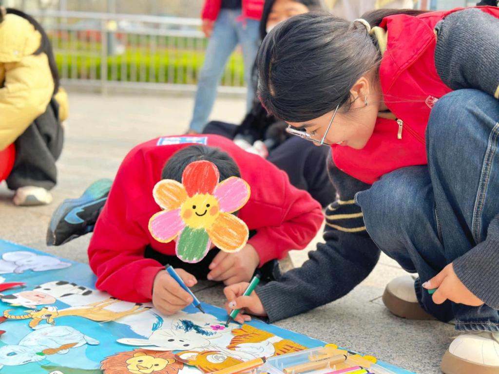 活动在轻松欢快的“星乐律动”唱跳互动中正式开启,志愿者们一对一贴心陪伴孤独症儿童,带领小朋友们跟随轻快的音乐拍手、律动、摇摆,在欢声笑语中拉近彼此距离,让孩子们慢慢放下拘谨。随后,志愿者与孩子们携手铺开百米长卷,围绕“春日森林里的快乐时光”主题开启集体创作,孩子们在志愿者的耐心引导下,自由挑选色彩、开心涂抹画面,制作动物卡片,用稚嫩的笔触勾勒出充满童趣与想象力的缤纷世界。志愿者温柔守护、悉心鼓励,让孩子们在绘画中认识世界、感受快乐、收获自信。