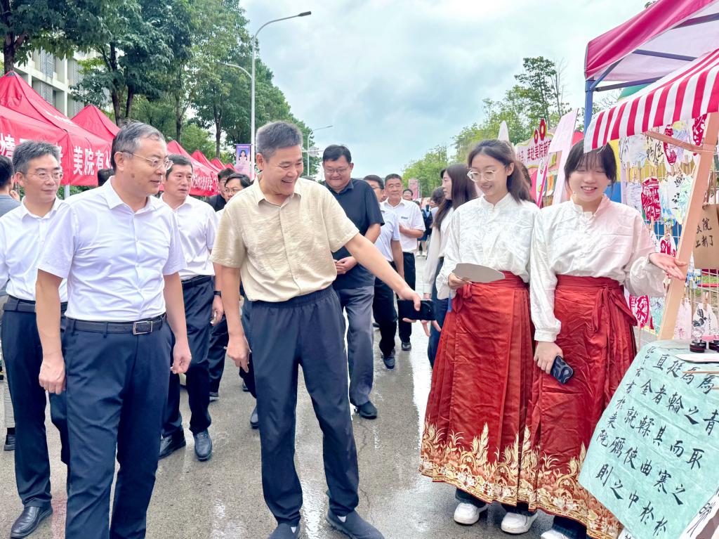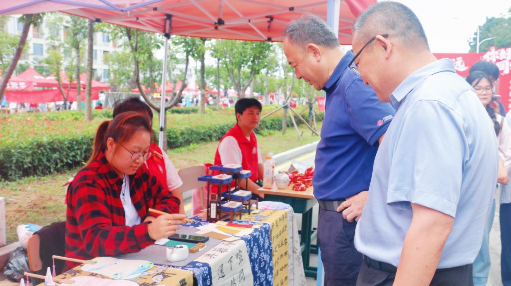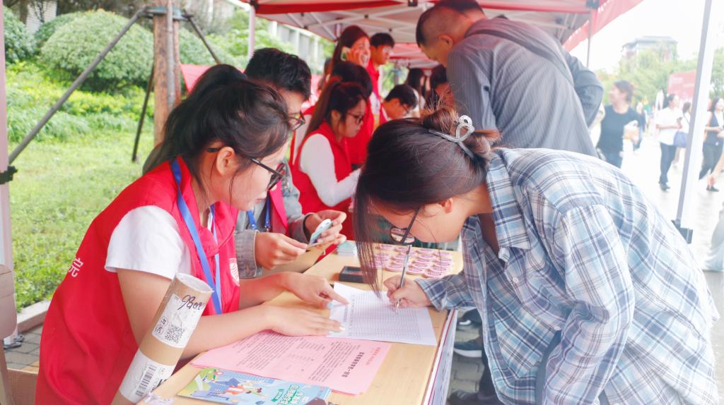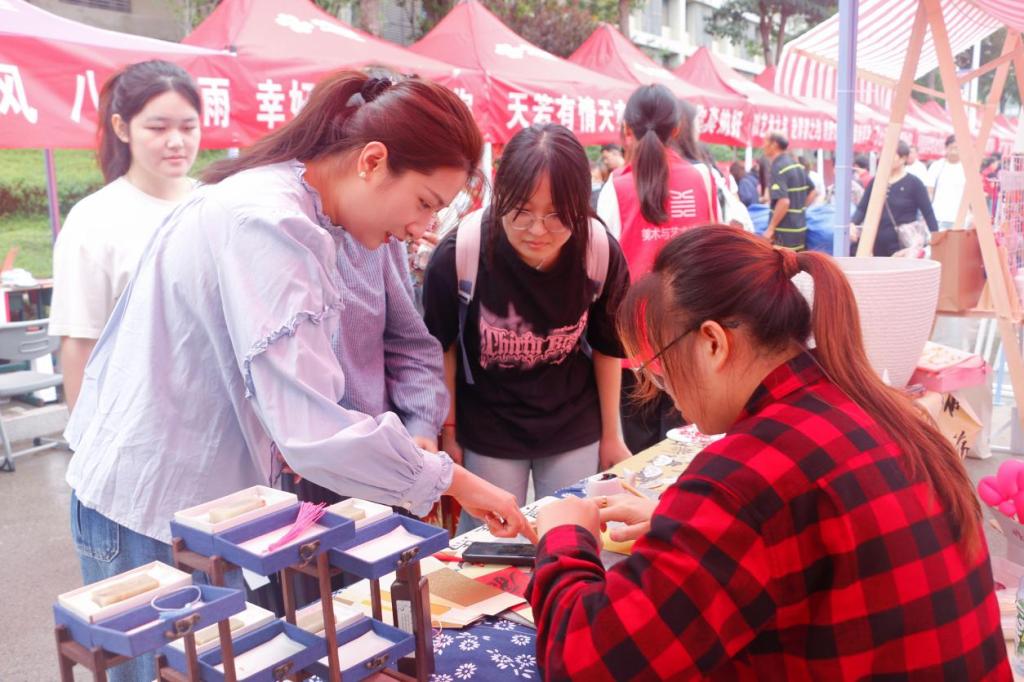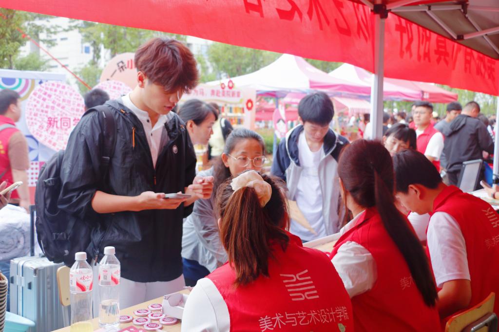 活动现场,365英国官网登录入口以“美创+引航”双驱动打造暖心迎新体验。精心布局的迎新摊位上,设置党员先锋岗并开设“绿色通道”,师生党员全程引导新生完成报到流程,耐心解答入学政策、宿舍入住等疑问,为新生提供“一站式”便捷服务。由党员志愿者与学生干部组成的“行李搬运队”用肩扛手提的行动传递关怀,有效缓解了新生及家长携带行李奔波的压力。学院提前为新生准备了定制院徽、卡套、钥匙扣及贺卡等“开学礼”。现场还设有新生抽奖箱,为新生开学注入惊喜彩蛋。学生社团带来的特色展示更是成为现场亮点:民间手工艺协会不仅带来漆扇、香包、非遗缠花、布艺、陶艺等文创好物,还开放非遗漆扇制作体验,邀请新生亲手感受传统工艺;大地书画协会将对新生的祝福融入笔墨,现场创作书法作品;文萃印社则带来迎新专属设计的特色印章,供新生加盖,留下独家入学记忆。